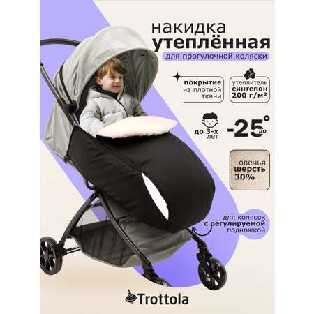 Утепленная накидка от бренда Trottola для прогулочных колясок: комфорт и безопасность вашего малыша в любую погоду. Она предназначена для колясок с регулируемой подножкой. Подходит детям до 3 -х лет.