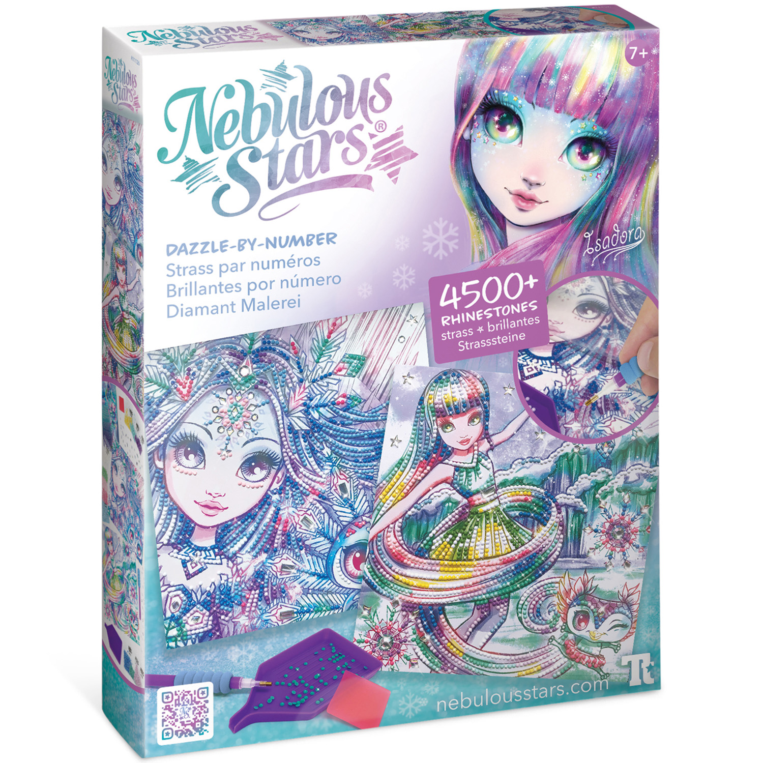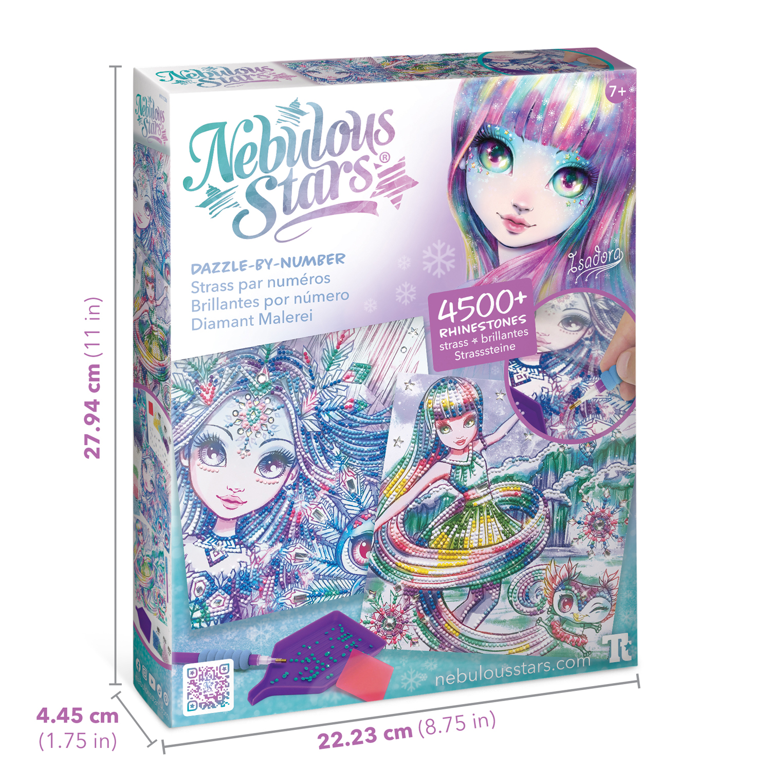Набор для творчества – алмазная мозаика по номерам. Создание картин из стразов, ориентируясь на цифры, связанные с каждым цветом. Размещение стразов на клеевые шаблоны с помощью специального аппликатора. К набору прилагается подробная инструкция и буклет с историей звёздочки Isadora. Набор предназначен для детей старше 7 лет. Комплектация: 2 картины для декорирования, более 4500 страз, аппликатор для стразов, поддон для стразов и восковой квадрат, полная история звездочки Isadora, инструкция Размер индивидуальной упаковки: 22,2 х 27,9 х 4,5 смЦены в интернет-магазине могут отличаться от розничных магазинов.