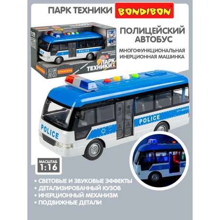 Инерционный полицейский автобус со светом и звуком из серии Парк Техники от Bondibon — это уникальная детская игрушка для мальчиков увлеченных темой атомобилей. Машина поможет ребенку раскрыть творческий потенциал, развить воображение и получить массу положительных эмоций. Быстрая и маневренная моделька займет достойное место в коллекции маленького автолюбителя!