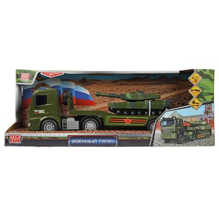 - Купили сыну (5 лет) – он в полном восторге! Тягач большой (38 см), выглядит очень реалистично, а главное – есть звук и свет! При движении раздаётся рёв мотора, мигают огоньки. Танк в комплекте – приятный бонус, его можно снимать и катать отдельно. Инерционный механизм работает отлично. Однозначно рекомендую!