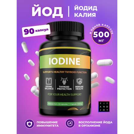 Йодид калия от FIT AND JOY! Йод в нашем организме необходим для синтеза гормонов щитовидной железы, которые, в свою очередь, регулируют основной обмен, а точнее, тот уровень энергозатрат, который необходим для поддержания жизнедеятельности организма в состоянии покоя. Йод участвует в выработке гормонов, которые помогают укреплять иммунитет и защищают клетки от повреждений. Это важно для поддержания общего здоровья и хорошего самочувствия. Йодид калия от FIT AND JOY восполняет дефицит йода в вашем организме, улучшает обмен веществ. Йод также увеличивает жиросжигание и уменьшает аппетит. Продолжительный прием капсул снижает уровень холестерина и развития атеросклероза, поддерживает иммунитет. Принимая Йодид калия от FIT AND JOY, вы улучшите работу сердца, увеличите запас вашей энергии и улучшите память.