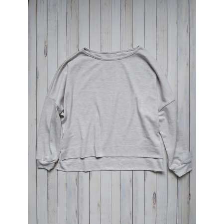 Тонкий джемпер оверсайз для девочки, девушки, женщины из легкого хлопкового трикотажного полотна бежевого с меланжевым эффектом- интерлок. Модель широкая и укороченная. С разрезами по бокам. Без карманов. Рукава спущенные с манжетами. Вырез горловины отделан бейкой. Без застежки. Предварительная стирка обязательна.