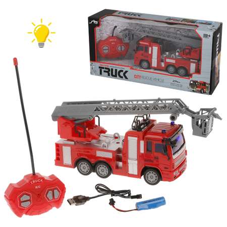 Игрушечная машина-автовышка на радиоуправлении выполнена в масштабе 1:30. Машинка на пульте управления осуществляет движение во всех направлениях: вперёд, назад, а также повороты вправо и влево. Управление осуществляется нажатием соответствующих кнопок пульта. Во время игры включаются световые эффекты. Пожарная лестница поднимается наверх и опускается вниз, а также поворачивается в стороны (вручную) с трескучим звуком. Игрушка работает от аккумулятора Li-ion 400 mAh на 3,7 V (входит в комплект), зарядка производится с помощью USB-устройства (входит в комплект). Пульт работает от 2-х батареек типа АА (не входят в комплект). Размер машины (ДхШхВ) составляет 26х7х10,5 см. Материал изготовления: пластмасса. Рекомендованный возраст: 3 года +