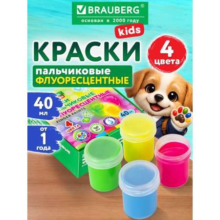 Краски пальчиковые Brauberg для малышей от 1 года 4 цвета флуоресцентные