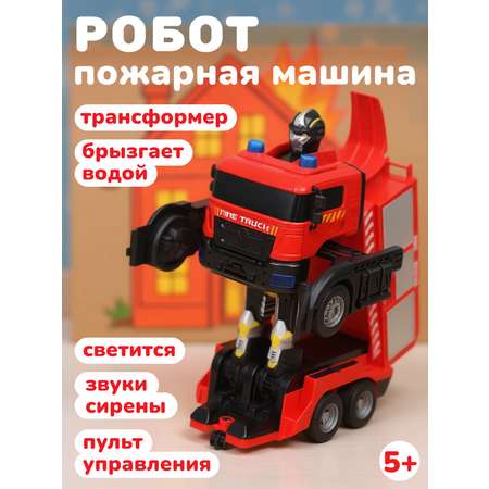 Машинка на пульте управления - пожарная машина-робот на радиоуправлении способна двигаться во всех направлениях, трансформироваться из машины в робота, а затем вернуться в исходную форму. Управление осуществляется с помощью пульта. В игрушке предусмотрены светозвуковые эффекты: во время игры подсвечиваются лампы на крыше кабины, активируется подсветка фар при движении, при этом машина-робот воспроизводит звуки сирены. Машина на пульте управления работает в двух режимах: со звуком и в беззвучном. Если предварительно наполнить резервуар, встроенный в корпус машины, то при нажатии кнопки, расположенной на машине, игрушка будет распылять воду. При наполнении можно использовать емкость (в комплекте). Машина-робот работает от аккумулятора на 3,7 V (входит в комплект), зарядка осуществляется с помощью USB-кабеля (входит в комплект). Для работы пульта понадобятся 2 батарейки типа АА на 1,5 V (не входят в комплект). Размер машины (ДxШxВ): 26х10х12 см.Изготовлено из полимерных материалов.