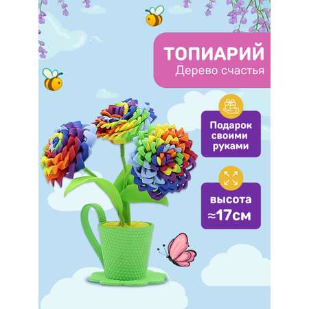Волшебная мастерская представляет топиарий, или дерево счастья, которое можно «вырастить» своими руками. Большое количество расцветок, разнообразие соцветий и бутонов поможет создать свой волшебный сад дома. Все необходимое имеется в наборе, включая готовую вырубку цветов и листьев из фоамирана, пошаговую подробную инструкцию с фото. В процессе сборки у ребенка развивается мелкая моторика, практические навыки, необходимые в течение всей жизни: умение пользоваться ножницами, клеем, утюгом, объемное мышление, чувство композиции. Для взрослого - это своего рода антистресс, возможность расслабиться и погрузиться в мир детстства.
