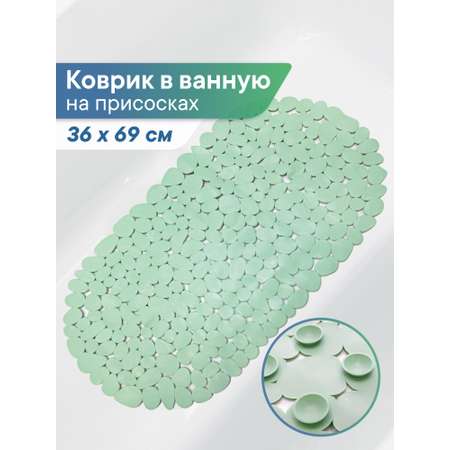 Коврик для ванны с присосками ПВХ "Морская галька" 36х69 см.Зеленый от российского производителя товаров для дома - ВИЛИНА. Противоскользящий коврик в ванну и душевую кабину - незаменимый аксессуар для семей с маленькими детьми и пожилыми родственниками: