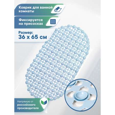 Коврик для ванны противоскользящий с присосками "Комфорт" 36х69 см ПВХ голубой . От российского производителя товаров для дома - ВИЛИНА. Противоскользящий коврик - незаменимый аксессуар для семей с маленькими детьми и пожилыми родственниками: