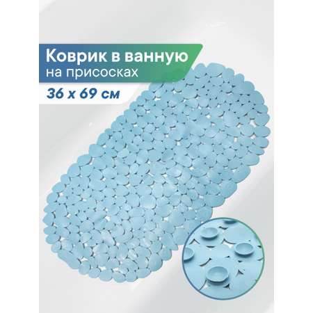 Коврик для ванны с присосками ПВХ "Морская галька" 36х69 см. Голубой от российского производителя товаров для дома - ВИЛИНА. Противоскользящий коврик в ванну и душевую кабину - незаменимый аксессуар для семей с маленькими детьми и пожилыми родственниками: