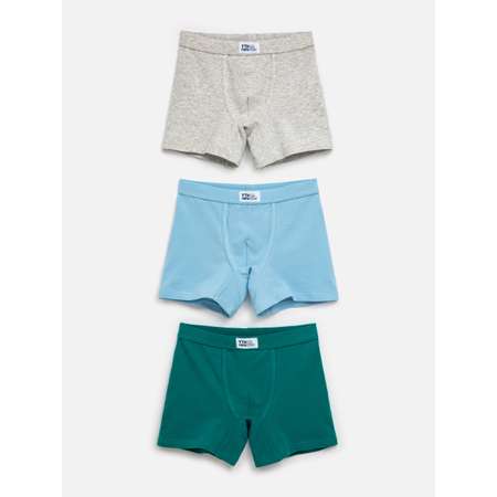 Комплект из трёх детских удлинённых трусов-боксеров для мальчика выполнен из однотонного хлопкового трикотажа, который обеспечивает комфорт и свободу движений. Модель средней посадки с эластичной резинкой на поясе для надёжной фиксации и дополнительного удобства. Спереди расположен гульфик, который создаёт больше комфорта. Жаккардовый патч с текстом на центральной части пояса добавляет стильный акцент. В комплект входят разнообразные цвета: светло-голубой, изумрудно-зелёный и серый меланж. Трусы-боксеры подойдут для повседневной носки и подарят ощущение комфорта на весь день. Позвольте вашему ребёнку чувствовать себя уверенно в любой ситуации.