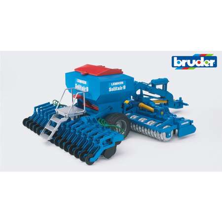 Этот масштабный посевной комплекс приведёт в восторг не только детей, но и взрослых. Он займёт достойное место в коллекции игрушечной сельскохозяйственной техники Bruder. Посевной комплекс является точной копией настоящего комплекса LEMKEN Solitair 9. Он выполнен в масштабе 1:16 и своими функциями вызовет неподдельный интерес: крепится к любому трактору с крюком для буксировки линейки Bruder; оборудован специальным ящиком с крышкой, куда можно засыпать «зерно» или песок; при движении начинает равномерно высеивать «зерно» в борозды. Как происходит засевание поля? Аппарат через сошники равномерно подаёт «зерно», благодаря чему весь процесс происходит реалистично. В качестве зерна можно взять песок. После окончания полевых работ детали сеялки поднимаются. Теперь можно переехать на другое поле или на стоянку. Игра с посевным комплексом Bruder будет развивать воображение детей, а благодаря мелким подвижным деталям тренируется моторика рук. Отличный подарок на Новый год.