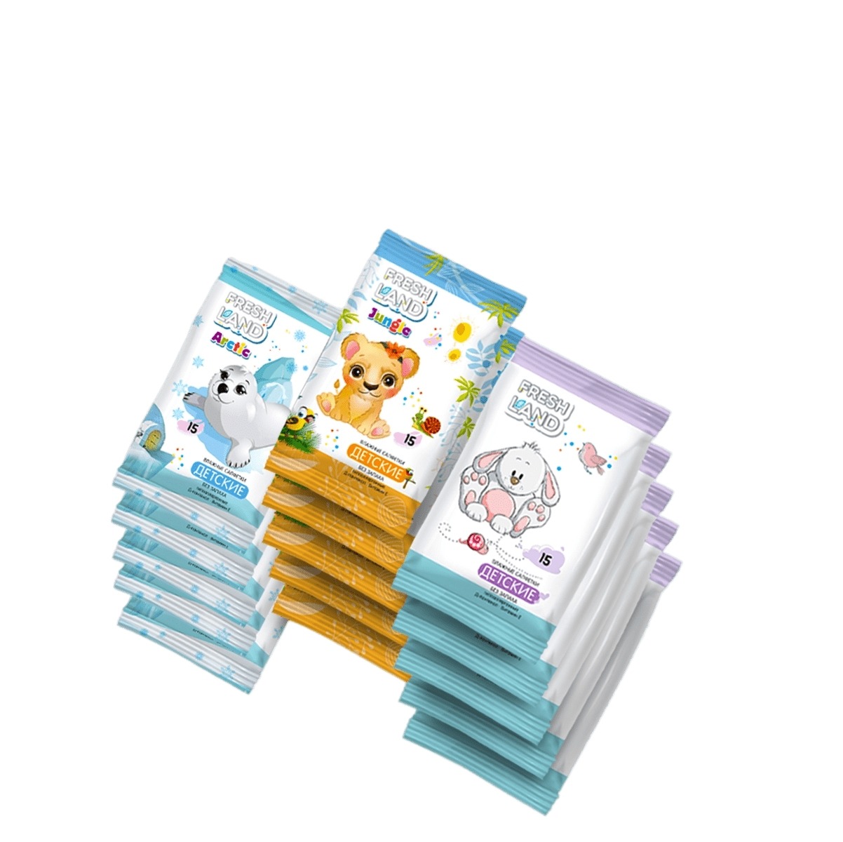 Влажные салфетки детские FRESHLAND Зоопарк 15х15шт без запаха
