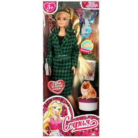Модница София одета в чёрно-зелёный костюм с пиджаком с узором «гусиная лапка», образ дополняют стильные серьги. Одежду и аксессуары легко снять и надеть. С такой модной куклой девочке будет интересно и весело играть: благодаря тому, что руки и ноги куклы подвижны, им можно придать любое положение. У Софии длинные красивые волосы, которые хозяйка куклы сможет заплетать в разные причёски. Детально проработанный дизайн игрушки вдохновит девочку на новые игровые сюжеты.