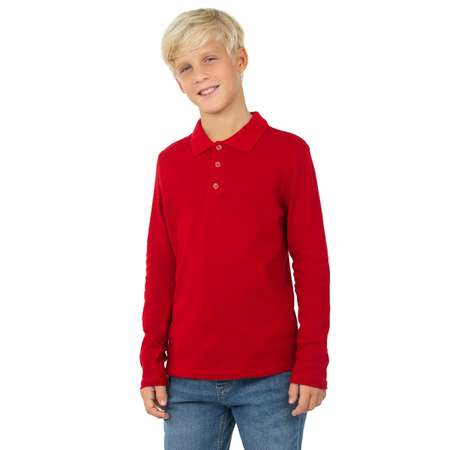Футболка для мальчика поло для мальчика из ПИКЕ с длинным рукавом красного цвета классического прямого кроя.