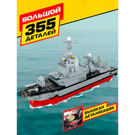 Конструктор детский блочный развивающий "Военная техника: Фрегат" (355 дет., 27 см).