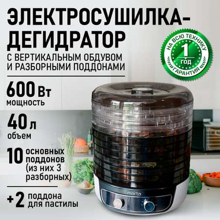 Дегидратор сушилка для овощей MARTA MFD-8010PS 13 поддонов/10 и 3 разборных/3 для пастилы/темный обсидиан