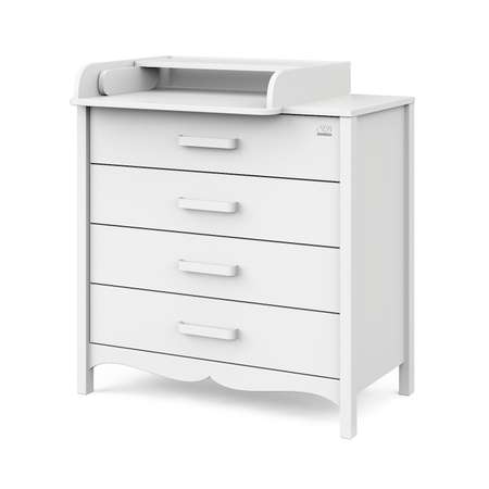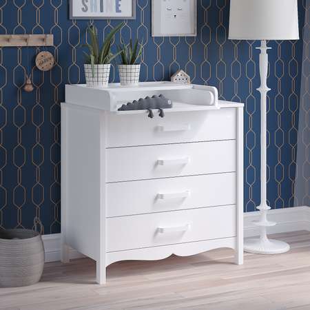 Комод Sweet Baby Maestro сочетает в себе практичность и элегантность. Пеленальный комод обладает стильными и устойчивыми ножками, выполненными из дерева. 4 вместительных ящика на направляющих бесшумного плавного хода оснащены металлическими ручками со скругленными углами. Фасад ящиков комода для пеленания выполнен из МДФ, покрытого белым матовым цветом. Корпус комода Sweet Baby Maestro изготовлен из ЛДСП цвета «Аляска белая». Отличительной особенностью комода является возможность устанавливать раскладной пеленальный столик слева, справа или по центру- как вам удобно! Пеленальная часть легко снимается, не оставляя никаких следов на столешнице. Характеристики: Размеры изделия, мм (ГШВ): 572 (820 в разложенном виде)*802*964 Направляющие для ящиков: шариковые Пеленальная площадь, мм (Г*Ш): 804*524 Размеры упаковки, мм (ДШВ): 920x570x185 Материалы: дерево, ЛДСП,ДВП, кромкооблицовочный материал ПВХ, мебельная фурнитура, кромка двойнаяЦены в интернет-магазине могут отличаться от розничных магазинов.