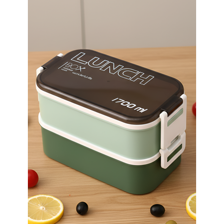 Ланч-бокс — это многоразовая посуда, которая идеально подходит для использования в школе. В контейнер можно положить обед на работу. Также ланчбокс можно взять с собой в поездку. Он компактный и легкий, поэтому с легкостью поместится в сумку. Ланч-бокс состоит из двух контейнеров. Общий объем ланч-бокса — 1,7 л. Размер ланч-бокса в собранном виде составляет 19,5 х 11,7 х 12,5 см. В комплекте идут ложка и вилка. Также есть отделение для столовых приборов и съемная перегородка.