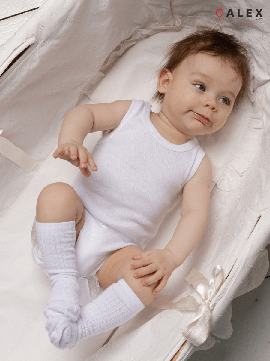 Высокие носки в рубчик для новорожденных малышей из мягкого трикотажа не раздражают кожу младенцев, позволяют ей дышать, а мягкая резинка не передавливает ножку. Хорошо держат форму, не растягиваются, не сползают во время движений.