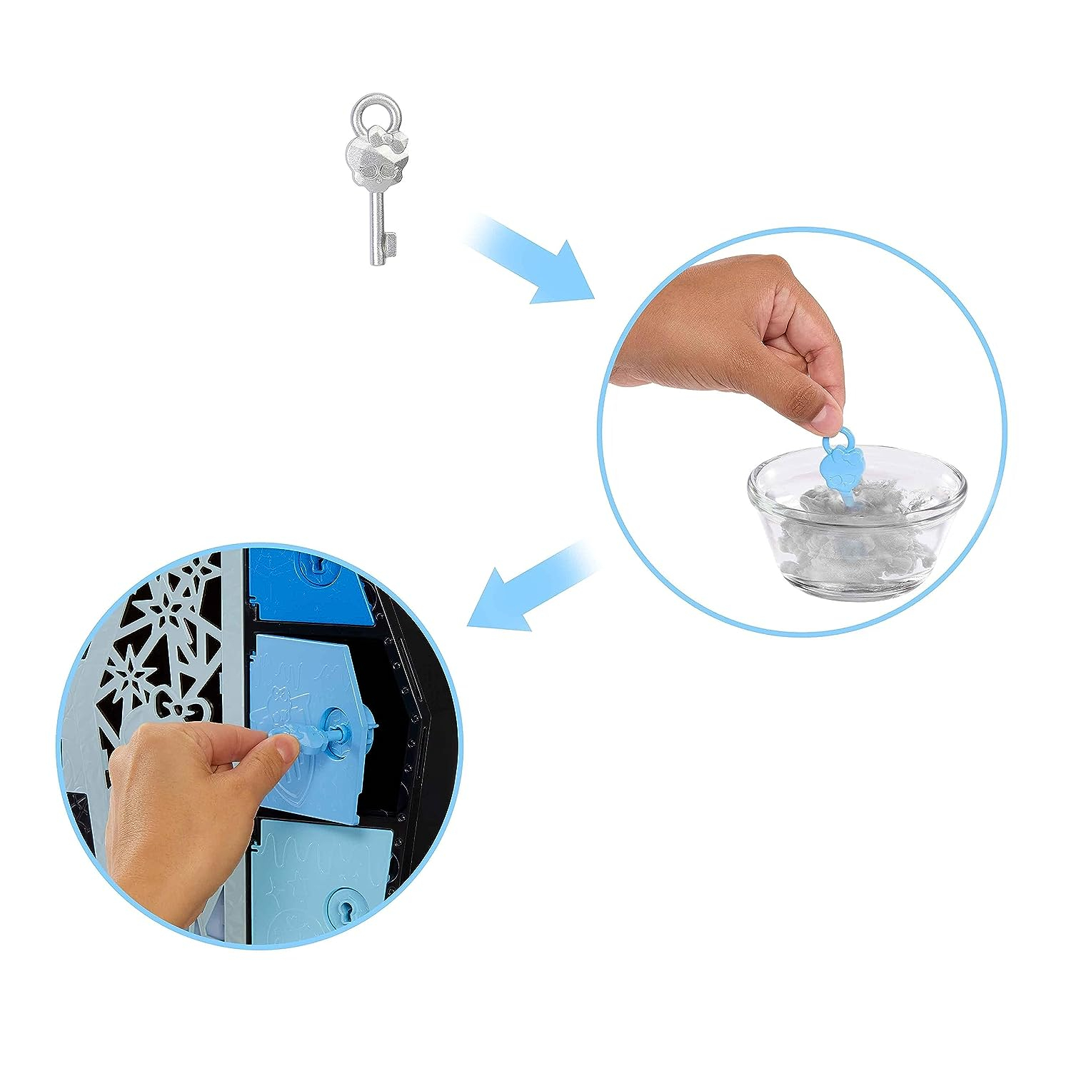 Кукла Фрэнки Штайн и ее модные сюрпризы выполнены в голубом оттенке. Откройте ее шкафчик и найдите потрясающие находки.