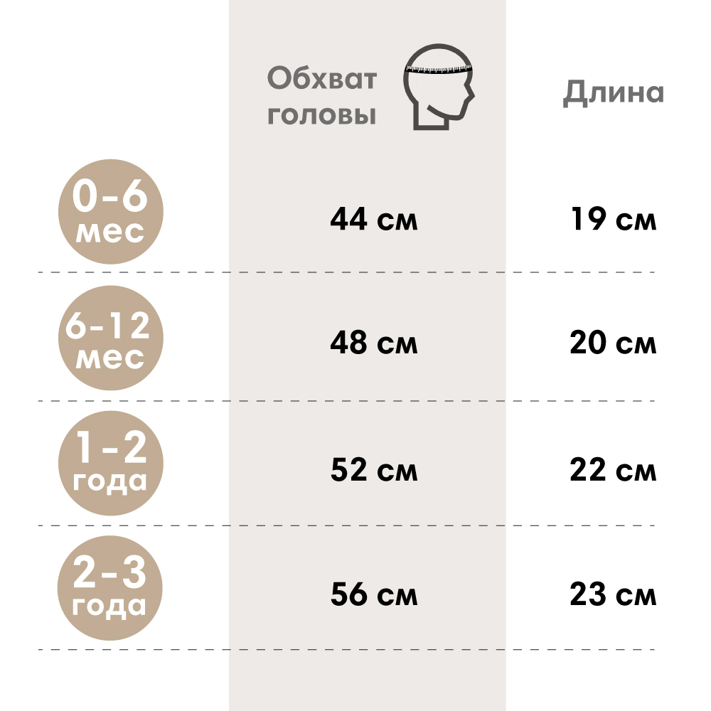 Диаметр внутренней поверхности шапки соответствует диаметру головы малыша: