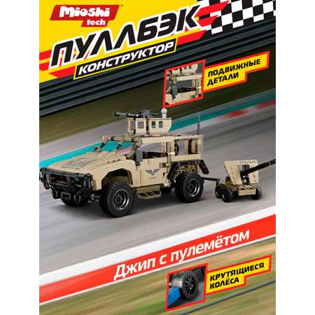 Конструктор детский блочный развивающий "Пуллбэк: Джип с пулемётом" (890 дет., 27,5 см, пружинный механизм).