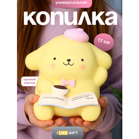 Копилка пластиковая iLikeGift Щенок — тёплая, милая и очень «домашняя» фигурка, которая помогает ребёнку делать первые сбережения и украшает комнату уютным настроением. Жёлтый щенок с розовой шапочкой, аккуратным бантиком и открытой книгой на коленях выглядит как герой трогательного мультфильма: спокойный, дружелюбный и будто приглашающий устроиться рядом и почитать. Такая копилка гармонично смотрится в детской, на столе школьника и даже в рабочем уголке взрослого, который любит милые детали.