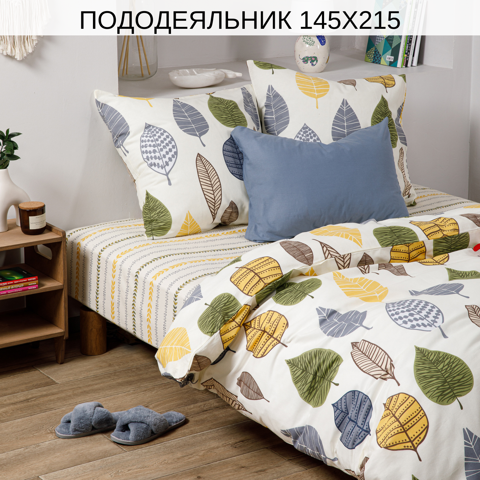 В данный комплект постельного белья входит:пододеяльник - 145*215 - 1 шт. прорезь выполнена по нижнему краю изделия, простынь - 145x215 - 1 шт. простыня цельнокроеная без резинки, не имеет швов, края обработаны с 4х сторон швом в подгибку 1 см с закрытым срезом, наволочки размером 50х70 см-2 шт. с клапаном.