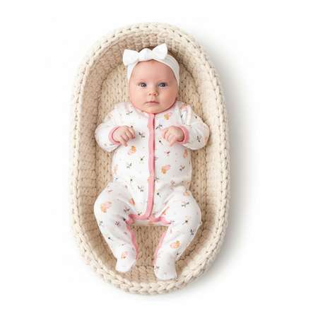 - Натуральный гипоаллергенный материал: Комбинезон выполнен из мягкого хлопкового трикотажа, который обеспечивает воздухопроницаемость, комфорт и безопасность для чувствительной кожи новорожденного.