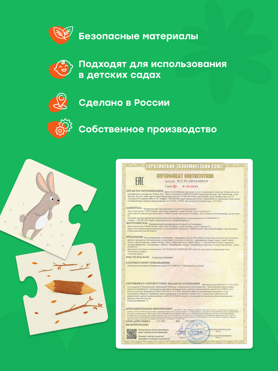 Яркая развивающая игрушка в форме парных пазлов познакомит малыша со зверятами и их любимыми лакомствами - развивает мелкую моторику, память и речь. Пазл maxi для малышей изготовлен из плотного картона с глянцевым защитным покрытием, не мнется, детали легко соединяются. Крупные части пазла удобно брать маленькими ручками, развивать точность движений. Это идеальный первый пазл, каждая картинка состоит из двух частей - животное и что он говорит. Такая игрушка подойдет для детей от 1 года. С ребенком можно играть вместе, называть животных, учить что они любят есть и составлять правильные пары пазлов. Дополнительно можно учить цвет на фоне. Пазл IQ имеет большие детали, которые легко брать в руку малышу, они не теряются. Игрушка детская дает возможность фантазировать и сочинять разные истории для активного развития речи. Игра для мышления учит находить нужный элемент из множества похожих и располагать его в нужном месте. Приятным бонусом от игрового набора для родителей будет стремление детей к порядку, после игры можно сложить в коробку. Такая настольная игра положительно влияет на развитие восприятия.