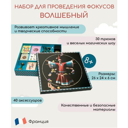 Набор для фокусов Djeco «Волшебный» - это 30 трюков, которые изучит ваш ребёнок, а потом будет удивлять невероятными чудесами всех своих друзей! Такой подарок точно понравится каждому начинающему магу. В наборе вы найдете 40 аксессуаров для проведения фокусов и один буклет с подробной инструкцией. Содержимое было разработано профессиональными фокусниками и оформлено компанией Djeco. Такие игры отлично развивают ловкость, уверенность и умение выступать перед аудиторией! Размеры упаковки: 26 х 24 х 6 см. Рекомендованный возраст: от 8 лет.Цены в интернет-магазине могут отличаться от розничных магазинов.