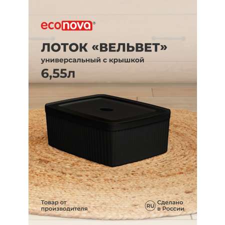 Лоток Econova с крышкой Вельвет 29.5х22.5х11 см 6.55 л черный