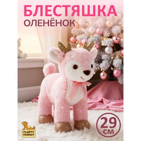 Мягкая игрушка в виде олененка станет отличным подарком для девочек и любителей животных. Высота игрушки в виде оленя составляет 29 см, что делает ее идеальным спутником для игр и объятий. Изготовлена из искусственного меха и трикотажа, она обладает приятной на ощупь текстурой. Олененок имеет милый дизайн с нежно-розовым оттенком, дополненный блестящими элементами на рогах и копытцах, что придает ему особую привлекательность.