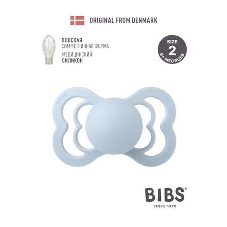 Пустышка BIBS Supreme Silicone Baby Blue 6+ месяцев.