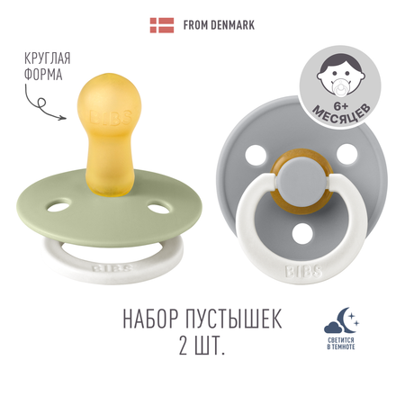 Набор 2 шт. Соска-пустышка BIBS Ночных Colour Glow Sage/Cloud 6+ месяцев