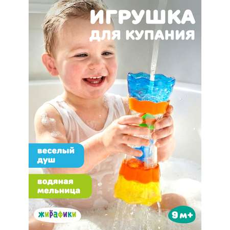 Развивающая водная игрушка для купания малышей превратит каждое пребывание в ванной или бассейне в настоящее приключение. Кроха обязательно полюбит купаться! «Веселый душ» отлично подходит детям от года и новорожденным, помогает развивать мелкую моторику, сенсорные навыки и воображение. Просто направьте струю воды на верхнюю часть — малыш будет с восторгом наблюдать, как лопасти начинают весело крутиться, а спираль плавно вращается. В конце своего путешествия вода аккуратно выливается из нижней части минифонтана мелким «дождиком», превращая процесс купания или плавания в увлекательную игру.