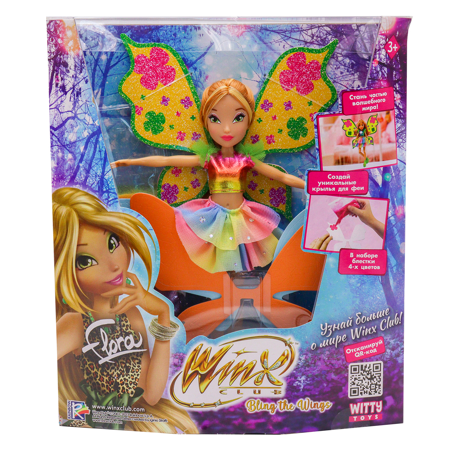 Цена на Кукла модельная Winx Блестящие крылья Флора - 1399 ₽.