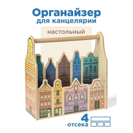Настольный деревянный органайзер для канцелярии Амстердам – чудесное решение для организации хранения школьных принадлежностей ребенка, для художественных работ, наборов для творчества или просто для бережного хранения книг, тетрадей, блокнотов, журналов, карандашей, ручек, маркеров. Размеры изделия: длина 27 мм, ширина 10,5 см, высота 26,5 см.