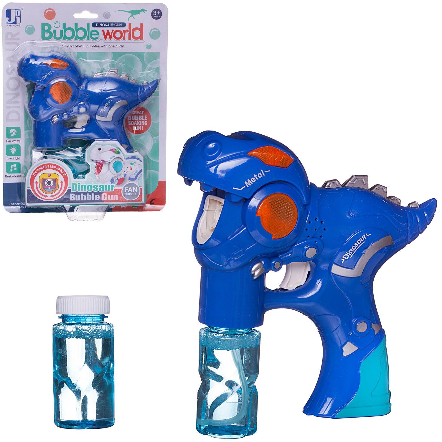 Мыльные пузыри Junfa пистолет Динозавр синий с 2 банками раствора на батарейках