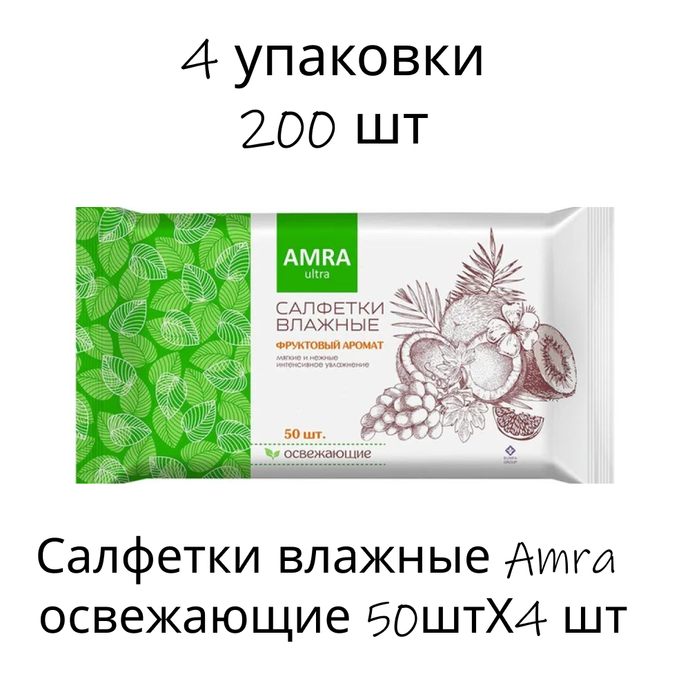 Цена на Влажные салфетки Amra 4 упак. 50 шт. - 513 ₽.