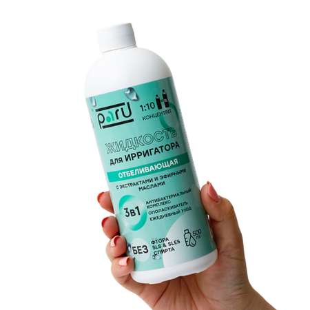 Отбеливающая жидкость для ирригатора - это антибактериальный концентрат, который специально разработан для ухода за полостью рта. Жидкость предназначена для ополаскивания полости рта и гигиены зубов, при этом его можно использовать как самостоятельное средство для ухода за полостью рта, так и в качестве раствора для ирригатора. Благодаря своему составу, раствор для ирригатора обладает освежающим эффектом, который длится длительное время. Ополаскиватель для полости рта PARU содержит в своем составе антибактериальные компоненты, которые борются с бактериями и предотвращают образование зубного налета и кариеса. Благодаря своей формуле, раствор для ирригатора деликатно заботится о деснах, не вызывая раздражения и воспалений. Он также выступает как освежитель для полости рта, который придает дополнительную свежесть и приятный аромат. Ополаскиватель для ирригатора является необходимым средством для тех, кто заботится о своей улыбке и здоровье полости рта. Раствор для ирригатора подходит для полоскания рта, а также он выступает как пенка для зубов.