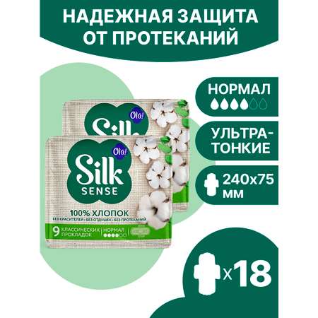Натуральные прокладки Ola! Silk Sense Нормал с хлопковой поверхностью 18 шт 2 уп по 9 шт