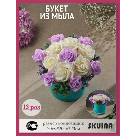 Сувенирное мыло SKUINA Цветочная композиция 13 бело-фиолетовых роз