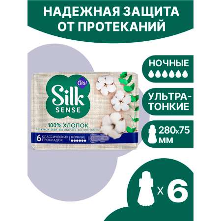 Прокладки Ola! Silk Sense ночные с хлопковой поверхностью 6 шт