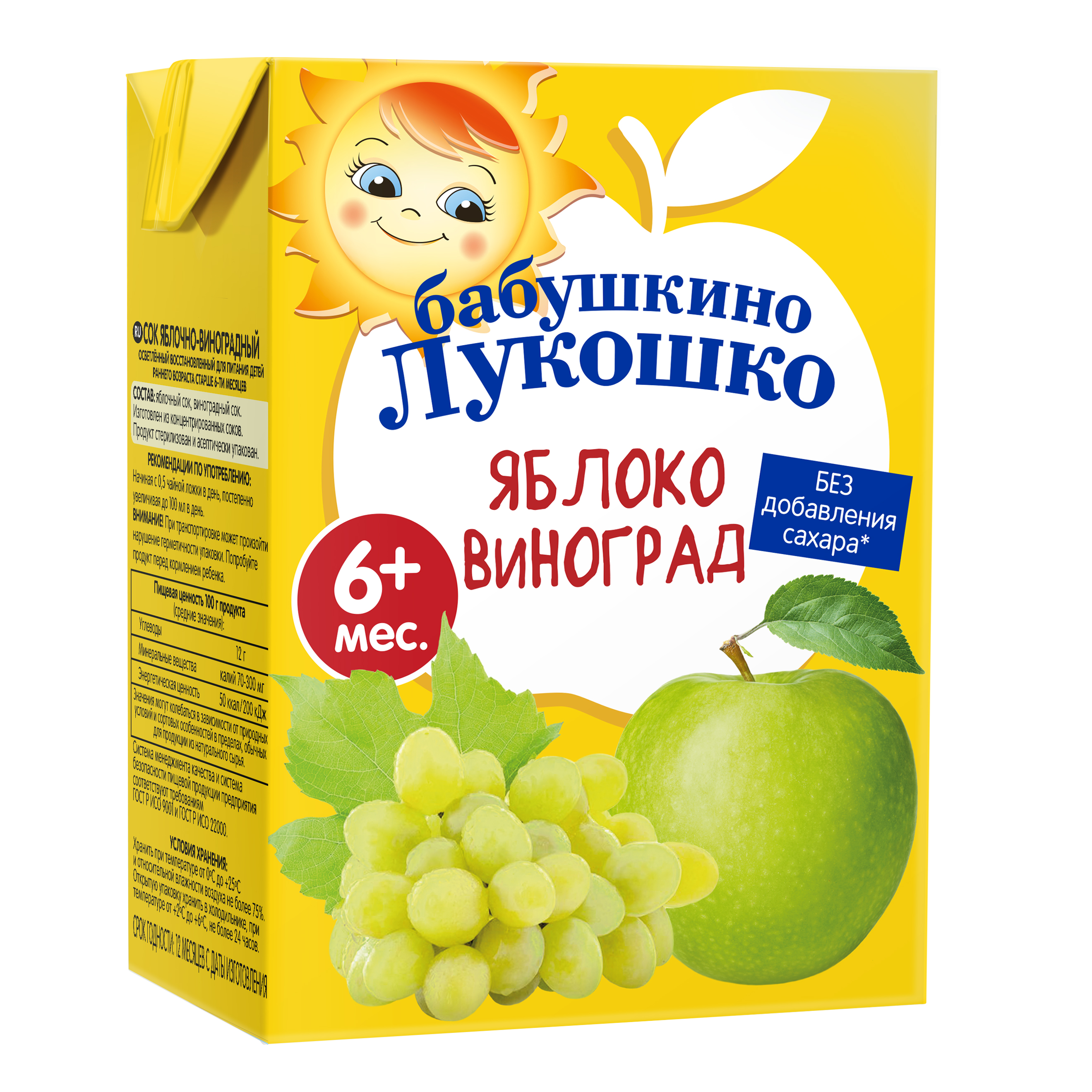 Цена на Сок Бабушкино лукошко Яблоко-виноград с 6 мес 0.2 л - 31.9 ₽.