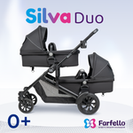 Коляска - трансформер для двойни Farfello Silva Duo - это уникальная коляска, которая имеет 6 различных конфигураций и легко трансформируется для двойни или погодок.