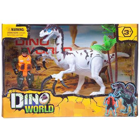 Игровой набор Junfa Мир динозавров 1 большой белый и фигурка человека с аксессуарами