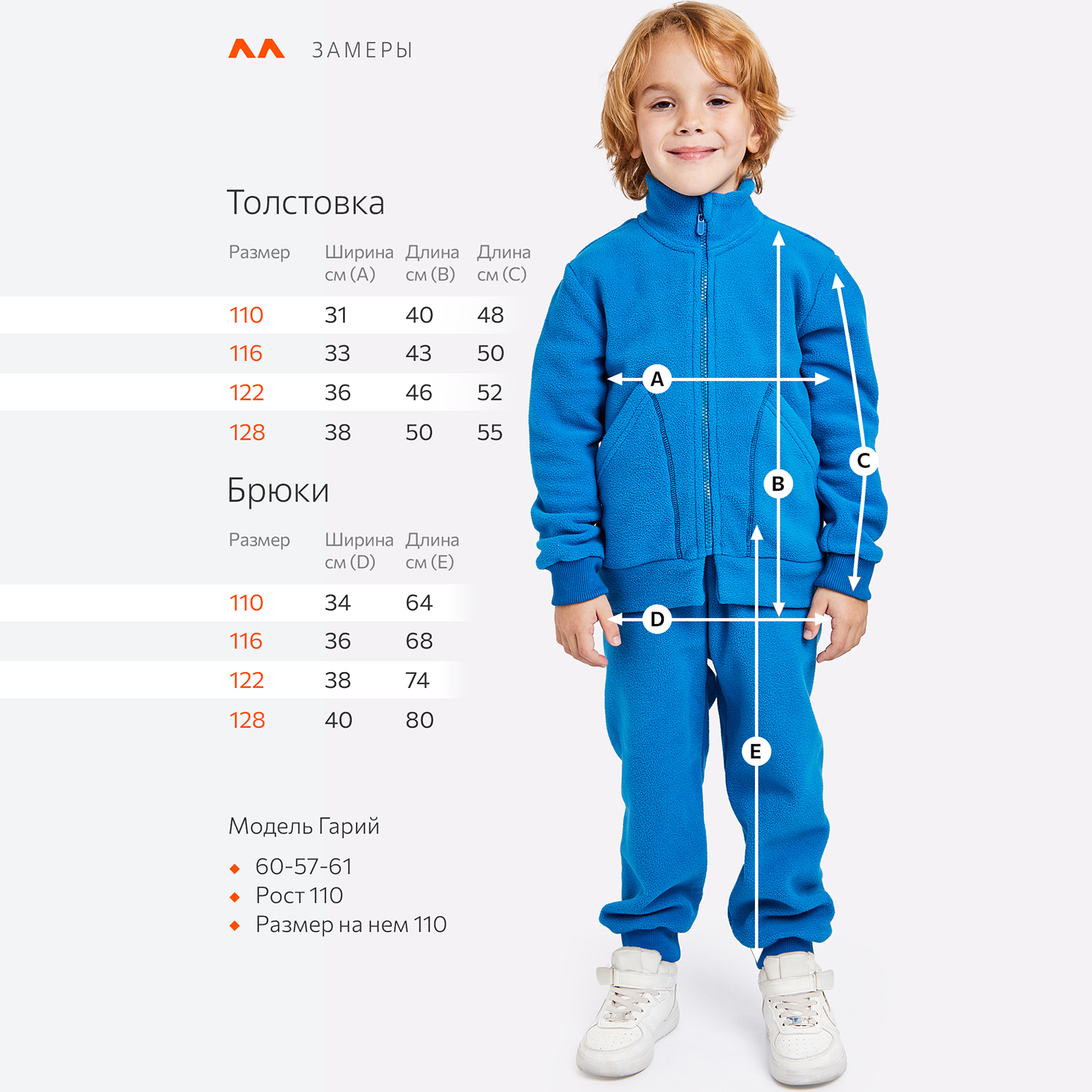 Размерный ряд позволяет подобрать костюм на флисе для детей 4-8 лет.