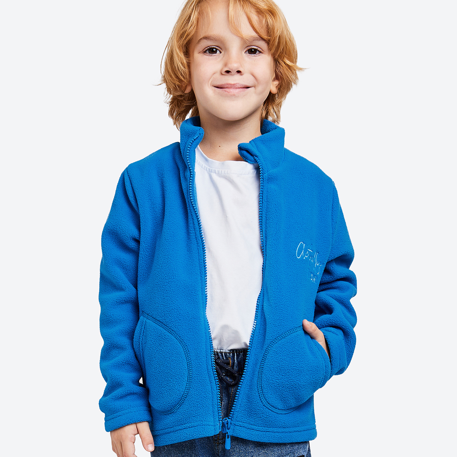 Невероятно мягкая детская толстовка для мальчика выполнена из приятного к телу флиса. Практичная ткань не линяет, быстро сохнет, легко стирается и почти не мнется. Теплая флисовая кофта представлена в ярком цвете электрик и украшена небольшой вышивкой на груди. Мягкая, высокая прилегающая горловина не давит, а плотно прилегает к шее и защищает от ветра. Толстовка на флисе имеет удобную молнию, на которой установлена защита, чтобы не задеть шею ребенка. По бокам расположены карманы. Свободный крой не стесняет движения. Флисовая толстовка согреет малыша в межсезонье. Куртка из флиса отлично подойдет для использования в качестве второго слоя под куртку или комбинезон зимой. Однотонная синяя спортивная кофта на флисе идеальна для долгих прогулок осенью и весной, не даст замерзнуть ребенку во время сильных холодов. Мягкая плюшевая толстовка из флиса – прекрасный повседневный вариант для осенних, весенних и зимних образов: для детского сада или занятий спортом. Рекомендуем стирать кофту из флиса в стиральной машине, выбирая деликатные режимы 30–40 °С. Сушить куртку на флисе в сушильной машине категорически запрещено. Флисовая куртка подойдет детям от 2 до 7 лет. Рост модели 110, параметры: объем груди 60, объем талии 57, объем бедер 61. На нем флисовая олимпийка размера 110.