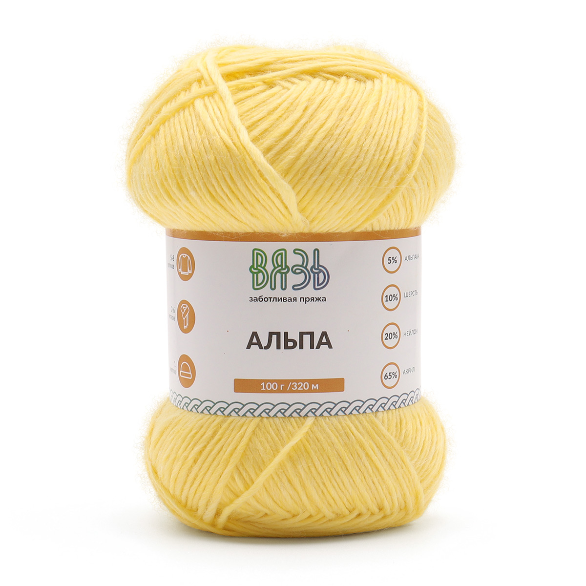 Цена на Пряжа ВЯЗЬ Альпа мягкая теплая с редким длинным ворсом прочная 100 г 320м 3 мотка 15 желтый - 604 ₽.